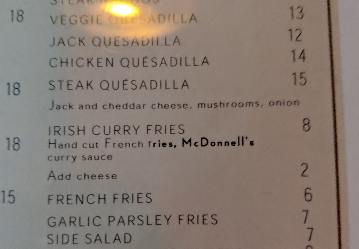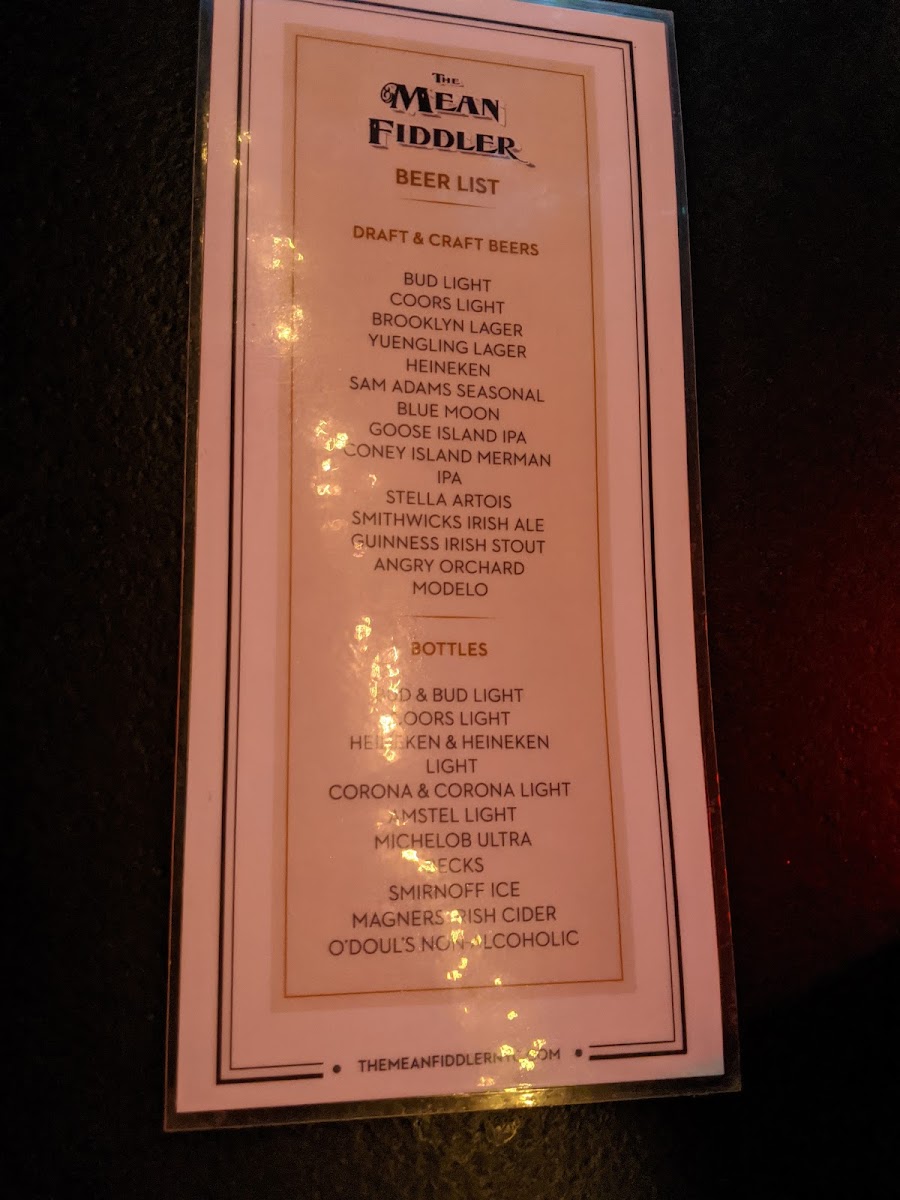 The Mean Fiddler Menu